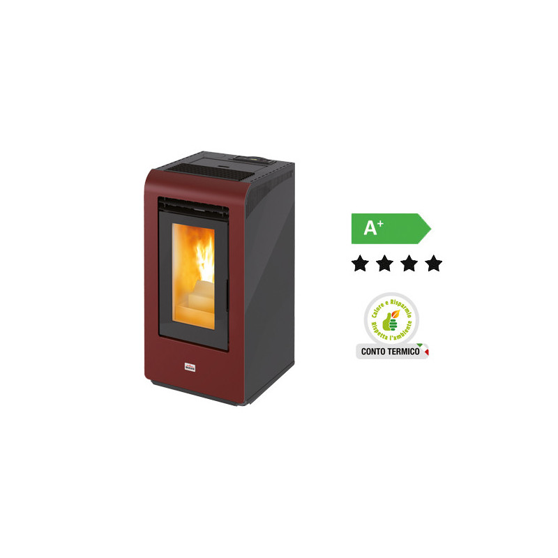 Potenza: 9,05 kWVolume riscaldabile: 230 m³Materiale: AcciaioDimensioni (LxPxH): 50x47x90 cmPeso: 78 kgColore: BordeauxAlimentazione: PelletUscita fumi: Ø 80 mmCapacità serbatoio: 13 kgEfficienza: 89,53–92,7%Consumo pellet: 0,6–2 kg/hTelecomando: SìPredisposizione WiFi: SìCanalizzazione: Fino a 6 metri tramite 1 uscita Ø 80 mm