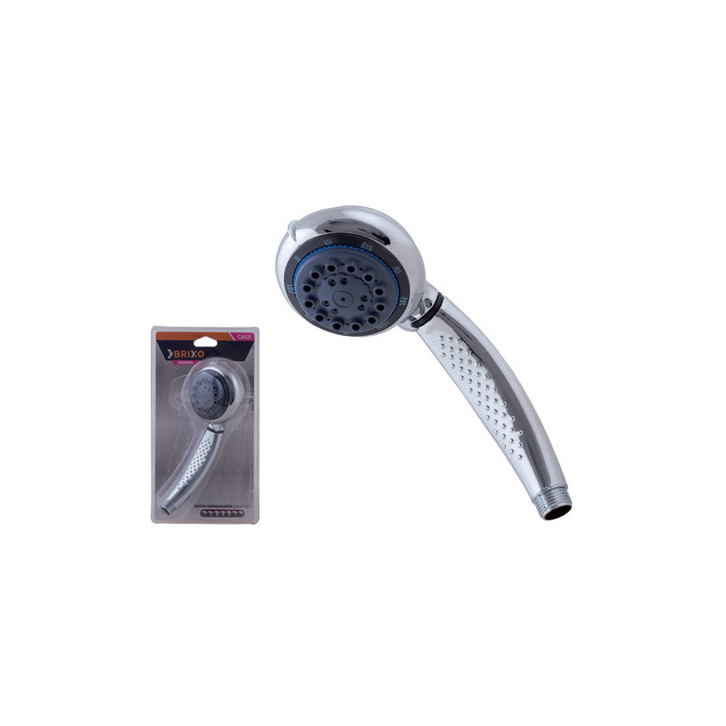 Doccia idromassaggio Cozumel Brixo cromata in ABS, 7 getti con tasto on/off. Impugnatura ergonomica e antiscivolo. Dimensioni 16,2×9,6×29 cm, peso 0,19 kg.