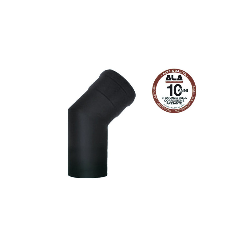 Il gomito ALA Aeternum a 45° con diametro di 10 cm è realizzato in acciaio pesante ad alto spessore, saldato con tecnologia laser e rivestito con smalto porcellanato.