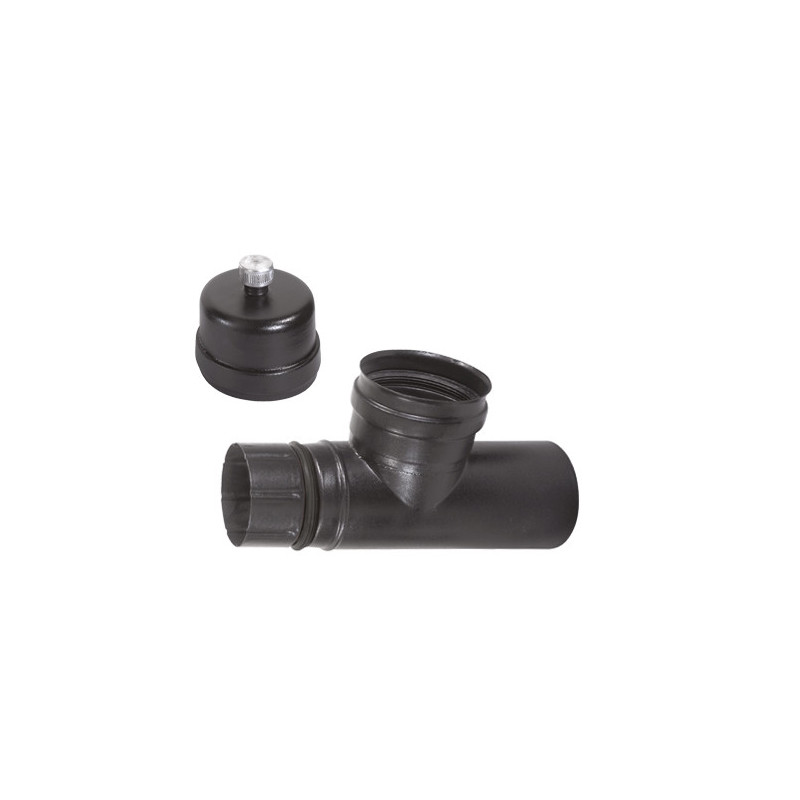 Raccordo a T per stufe a pellet con diametro di 10 cm, progettato per la connessione di tubi in impianti di riscaldamento domestico.