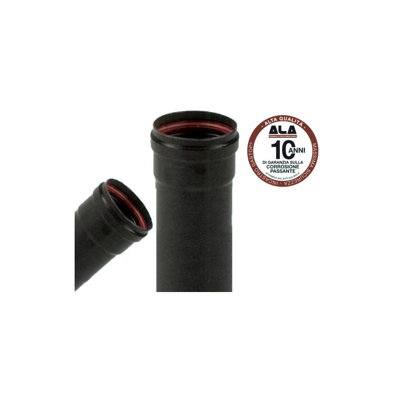Dotato di guarnizione siliconica, è certificato CE secondo le norme EN 1856-2 e EN 1443, con classe di pressione P1, resistenza alla temperatura T200 e classe di resistenza alla corrosione V2.