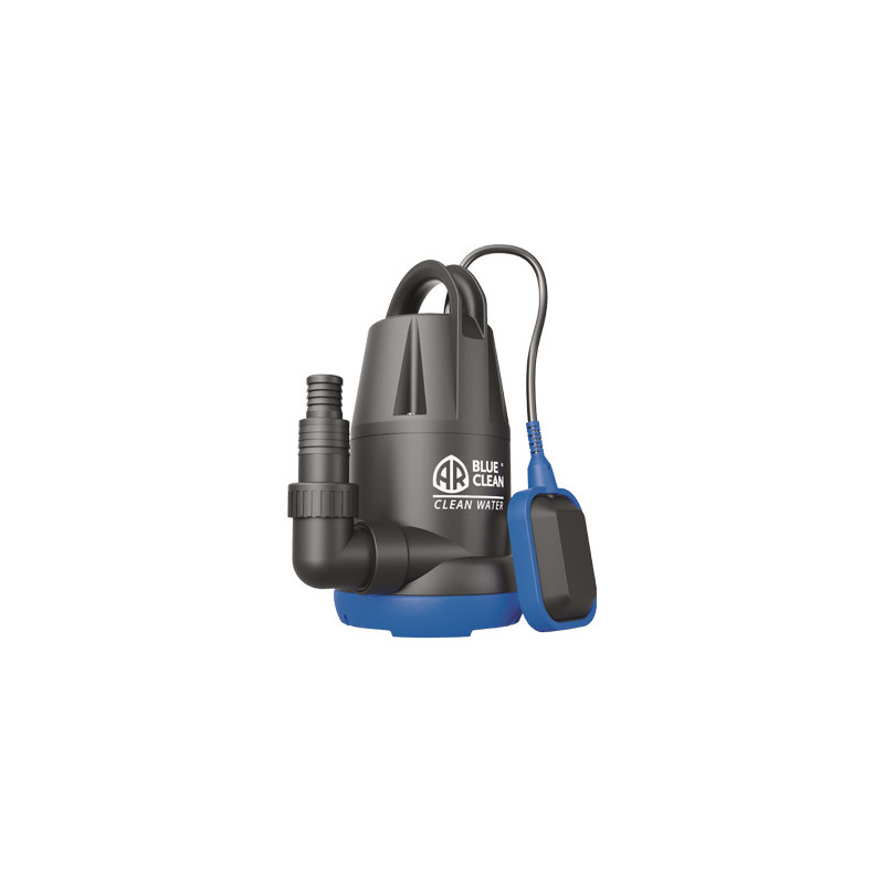 Pompa sommersa per acque chiare 250 W con galleggiante integrato e maniglia per trasporto.