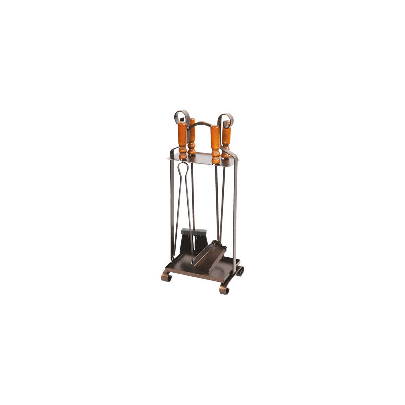 Set attrezzature camino Totem 4 pz composto da paletta, scopino, pinza e supporto porta utensili.