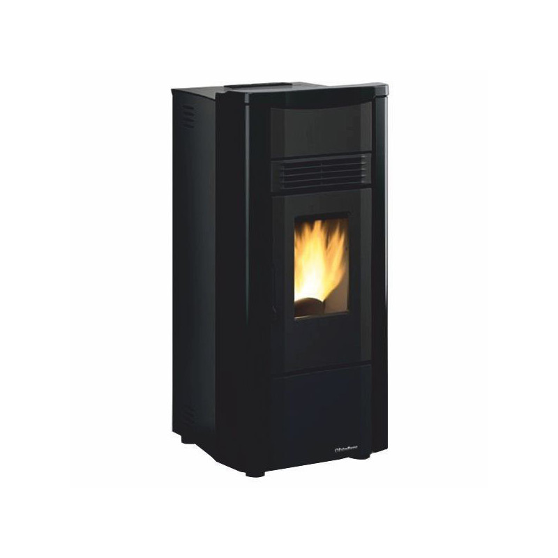 La stufa a pellet modello Giusy 5.0 in finitura Nera propone le stesse prestazioni: potenza da 3,0 a 7,0 kW, consumo pellet tra 0,7 e 1,6 kg/h.