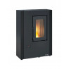 La stufa a pellet modello Luisella Maxy 5.0 in finitura Nera è progettata per ambienti compatti grazie alle dimensioni ultrapiatte di 64×29 cm e altezza 89 cm.