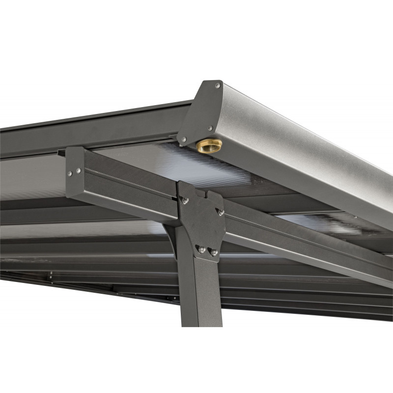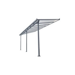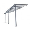 Tipologia: Tettoia addossataStruttura: Alluminio verniciato antraciteCopertura: Policarbonato alveolare traslucidoTrattamento pannelli: Anti-UVSpessore pannelli: 6 mmColore tetto: Trasparente opalinoColore struttura: Grigio antraciteDimensioni esterne: 300 × 307 cmAltezza anteriore: 210 cmAltezza posteriore: 299 cmSuperficie coperta: 9,21 m²Piedi: 2 con...