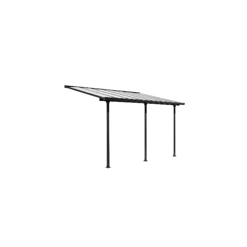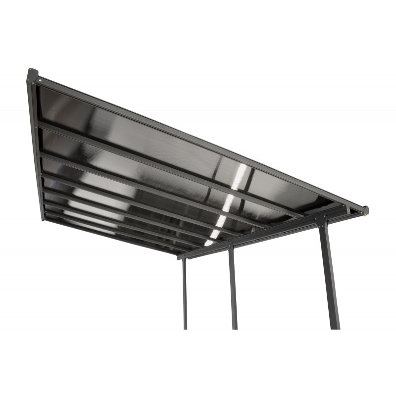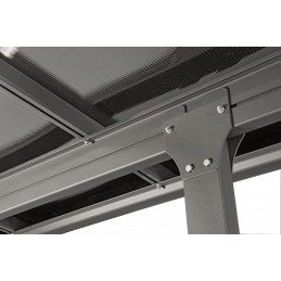Tipologia: Tettoia addossataStruttura: Alluminio verniciato antraciteCopertura: Policarbonato alveolare traslucidoTrattamento pannelli: Anti-UVSpessore pannelli: 6 mmColore tetto: Trasparente opalinoColore struttura: Grigio antraciteDimensioni esterne: 300 × 307 cmAltezza anteriore: 210 cmAltezza posteriore: 299 cmSuperficie coperta: 9,21 m²Piedi: 2 con...