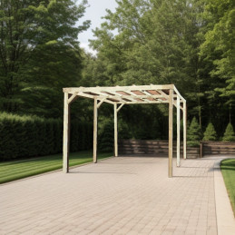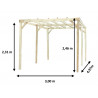 Materiale: pino silvestre trattato autoclave classe IIIColore: legno autoclavatoStruttura: 3 pali da 90 x 90 mmCopertura: travi equidistanti da coprireCaratteristica: carport adossabile a muroDimensioni tetto: 3,00 x 5,00 m (15 m²)Base consigliata: 270–300 x 471–501 cmAltezza frontale: 2,20 mAltezza posteriore: 2,40 mLarghezza passaggio: 2,80...